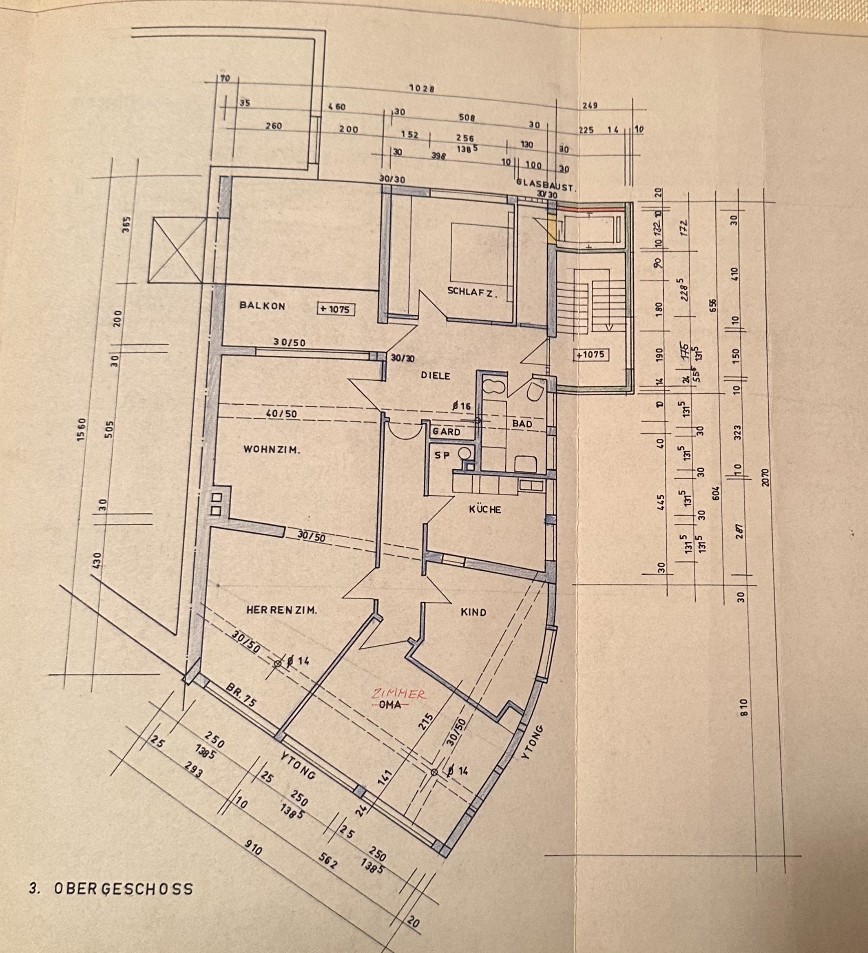Die ca. 260 m² Gewerbefläche verteilt sich auf zwei Gewerbeeinheiten im Erdgeschoss und Untergeschoss. Die ca. 600 m² Wohnfläche verteilen sich auf zwei Wohnungen im zweiten, dritten und vierten Obergeschoss, sowie auf den ersten Obergeschoss der sich im Rohbau befindet.